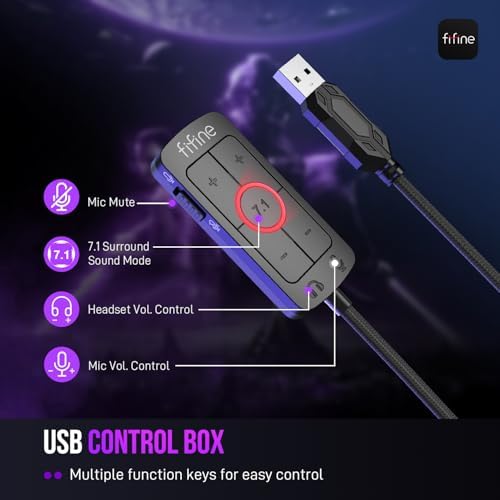 Home desktop sales FIFINE Wired Gaming Headset, USB Headphone with 7.1 Surround Sound, Detachable Microphone, Control Box, 3.5mm Headphones Jack, Over-Ear Headset for PC/PS5/Xbox/Switch, Black-AmpliGame H9
