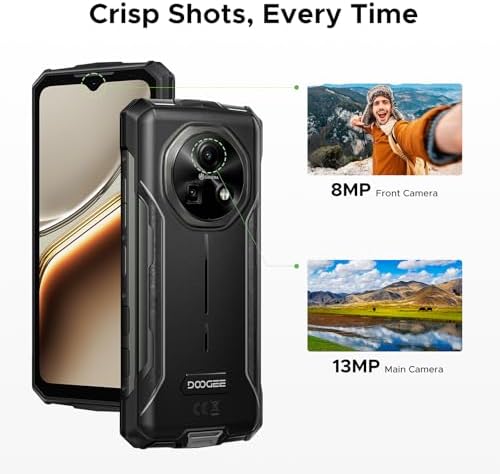 📱6.6″HD+ 90Hz Display & 13MP AI Camera📱The DOOGEE Fire 5 Pro rugged phone features a stunning 6.6-inch HD+ display with a 90Hz refresh rate, delivering smooth visuals and crisp details for streaming, gaming, and daily use. Equipped with a 13MP AI main camera and an 8MP front camera, it captures sharp, vibrant photos and clear selfies. Built tough yet compact, this rugged smartphone provides excellent color accuracy and wide viewing angles, making it perfect for both work and adventure.