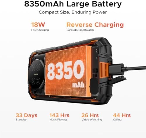 【𝟖𝟑𝟓𝟎𝐦𝐀𝐡 𝐋𝐚𝐫𝐠𝐞-𝐜𝐚𝐩𝐚𝐜𝐢𝐭𝐲 𝐁𝐚𝐭𝐭𝐞𝐫𝐲 & 𝐎𝐓𝐆】DOOGEE Fire 3 Max Rugged Phone boasts a massive 8350mAh battery for exceptionally long battery life. For outdoor adventure enthusiasts, the rugged smartphone is a perfect solution for those struggling with low battery, eliminating the need to worry about charging outdoors. The OTG reverse charging function transforms this rugged android phone into a power bank, perfect for charging your Bluetooth headphones or smartwatch while you’re out and about.
