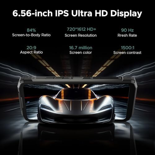 𝟔.𝟓𝟔-𝐈𝐧𝐜𝐡 𝐈𝐏𝐒 𝐇𝐃+ 𝐃𝐢𝐬𝐩𝐥𝐚𝐲 & 𝟏𝟐𝟏𝟔-𝐋𝐞𝐯𝐞𝐥 𝐖𝐚𝐭𝐞𝐫𝐩𝐫𝐨𝐨𝐟 𝐒𝐩𝐞𝐚𝐤𝐞𝐫: The Fire 6 Power rugged smartphone features a 6.56-inch HD+ display with an impressive screen-to-body ratio, delivering detailed visuals with high resolution. Its 90Hz dynamic refresh rate ensures vibrant colors, sharp contrast, and wide viewing angles, providing an unparalleled experience for web browsing, HD video streaming, or intense gaming. Additionally, Fire 6 Power rugged android phone is equipped with a 1216-level linear waterproof speaker, offering pure and rich sound quality, even in challenging environments.