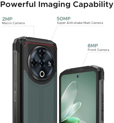 𝟓𝟎𝐌𝐏 𝐀𝐈 𝐌𝐚𝐢𝐧 𝐂𝐚𝐦𝐞𝐫𝐚 + 𝟖𝐌𝐏 𝐅𝐫𝐨𝐧𝐭 𝐂𝐚𝐦𝐞𝐫𝐚 + 𝟏𝟎𝟖𝟎𝐩 𝐕𝐢𝐝𝐞𝐨: Fire 6 Power rugged smartphone is equipped with a 50MP AI main camera that can take first-class UHD photos; 8MP front camera combines a high-pixel sensor and a beauty algorithm to show your charm. With the Morpho EIS anti-shake function, unlocked phone can accurately focus, suppress shake, and ensure excellent image quality to meet all shooting needs from landscapes, selfies to macros. In addition, rugged cell phone also supports 1080p video recording, allowing you to shoot high-quality videos in any situation.