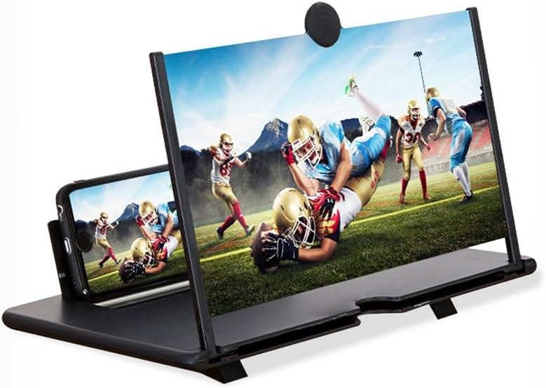 Home Moblie 12-inch Phone Screen Magnifier, 3D HD Mobile Projector Screen for Movies & Videos, Foldable Phone Stand with Screen Amplifier, Compatible with All Smartphones (Black)