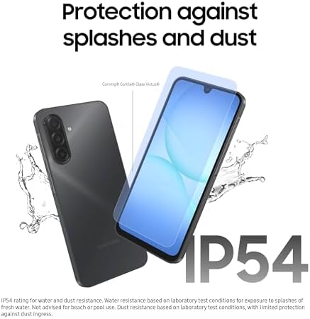 BUILT TO LAST: With an improved IP54 rating, Galaxy A17 5G is even more durable than before.⁴ It’s built to resist splashes and dust and comes with a stronger yet slimmer Gorilla Glass Victus front and Glass Fiber Reinforced Polymer back.