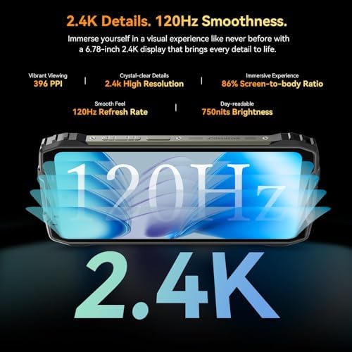 【6.78″ 120Hz Immersive Display】The Blackview BL7000 features a 2.4K display with a 120Hz refresh rate, providing a smooth visual experience. The 2460×1080 resolution ensure every detail displayed with stunning clarity. With a intelligent adaptive refresh rate, the screen adjusts dynamically to balance smoothness and power efficiency. The 6.78-inch large screen offers an expansive view for gaming, streaming, and multitasking. The in-cell touch technology ensures responsive and accurate touch control. Whether you’re outdoors in bright sunlight or in low-light conditions, its screen delivers exceptional visibility and color accuracy, making it perfect for any scenario.