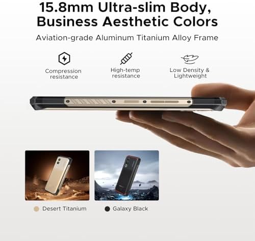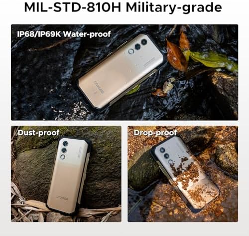 Home Moblie DOOGEE Blade 20 Turbo AI 5G Rugged Phone Unlocked,10300mAh/33W,Android 15 Rugged Smartphone,32GB+256GB/TF 2TB,Dimensity 7050,6.6”HD + 90Hz,50MP+16MP,Face ID/NFC/WiFi6/IP68/IP69K/3 Card Slot,Golden