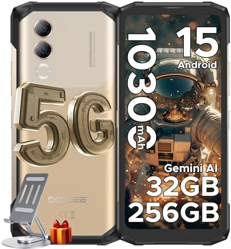 DOOGEE Blade 20 Turbo AI 5G Rugged Phone Unlocked,10300mAh/33W,Android 15 Rugged Smartphone,32GB+256GB/TF 2TB,Dimensity 7050,6.6”HD + 90Hz,50MP+16MP,Face ID/NFC/WiFi6/IP68/IP69K/3 Card Slot,Golden