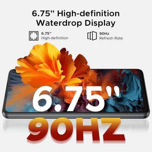 【𝟔.𝟕𝟓” 𝐇𝐃+ 𝟗𝟎𝐇𝐳 𝐒𝐜𝐫𝐞𝐞𝐧, 𝟏𝟔𝐌𝐏+𝟖𝐌𝐏 𝐀𝐈 𝐂𝐚𝐦𝐞𝐫𝐚】DOOGEE Note 58 Pro unlocked android phone features a 6.74-inch HD+ display with a 90Hz refresh rate, offering a captivating visual experience with a 90% screen-to-body ratio and 450 nits of brightness. This android phone also comes with a 16MP AI rear camera and an 8MP front camera, ensuring clear photos and selfies. IPS technology ensures wide viewing angles and vibrant colors, making every image and video look their best on this unlocked cell phone.