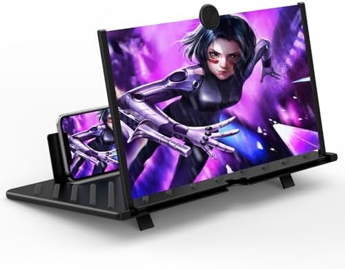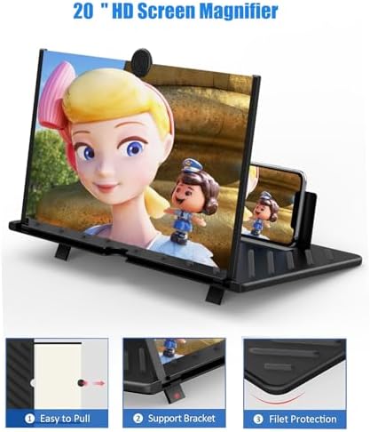 20 inch 3D HD Mobile Phone Magnifying Projector Screen Enlarger, Video Amplifier Stand Bracket for Movies, Videos and Gaming