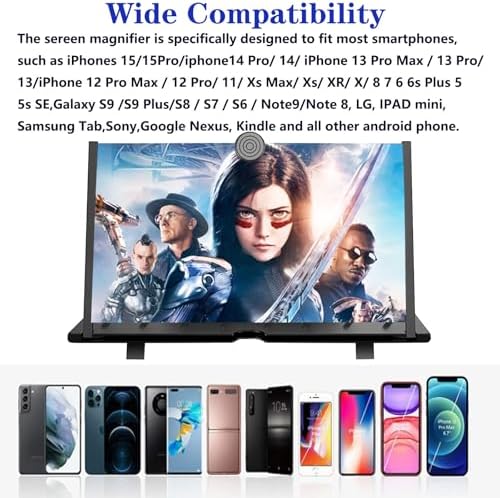 【Compatible With Your Device】- The screen magnifier is specifically designed to fit most smartphones, such as iPhones 15/15pro 14/14pro/ 13/13pro/ 12/12 pro/12 mini / Xs Max/XR/X/8/8 Plus/7/7 Plus/6S, Samsung Galaxy Note 10/9/8/7/6/5 Edge Android phone smartphones.
