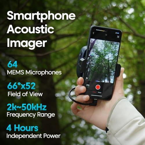 🔍【See Sound in Real Time】Turn your smartphone into a powerful acoustic imager with the FOTRIC TD2 Geek. Using a 64-microphone array, it captures and visualizes sound sources from 2kHz to 50kHz—allowing you to literally see where sounds come from with a colorful sound overlay on your screen.