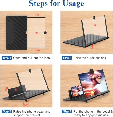 Home Moblie 20″ Screen Magnifier for Mobile Phone,3D HD Cell Phone Magnifying Projector Screen Enlarger for Movies, Videos, and Gaming,Foldable Phone Stand with Screen Amplifier,Supports All Smartphones (Black)