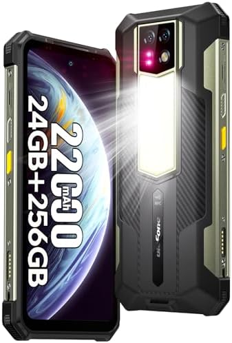 Ulefone Armor 24 22000mAh Mega Battery Unlocked Rugged Phone, Camping Light, 24GB RAM +256GB ROM, 6.78″ FHD+120Hz Screen, 64MP Main Camera + 64MP Night Vision Camera, Android 14 Rugged Smartphone NFC