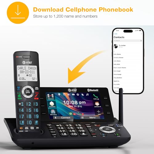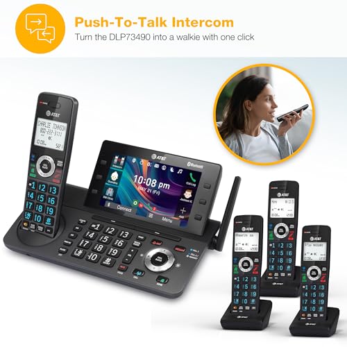 With the AT&T DLP73490 4-Handset Expandable Cordless Phone with Unsurpassed Range features the industry’s largest 5″ color base display, managing your communication has never been easier. Assign shortcuts on the large display for quick access to features that are important to you and easily view all the relevant information from messages left on the answering system. With Bluetooth Connect to Cell and Smart Call Blocker, you won’t have to worry about unwanted calls waking you up in the middle of the night or tying up the line. Robocalls are automatically blocked from ever ringing through—even the first time. You can also permanently blacklist any number you want with one touch. Bluetooth Connect to Cell technology on this cordless phone system lets you receive cell and/or landline calls from one home phone system. With a touch of a button, enjoy the high-tech benefits your smartphone offers. Even if your smartphone is in a different room, you can still access Siri or Google Now from the cordless handsets. Place a call, write, or read a text and perform all the other actions these services offer.