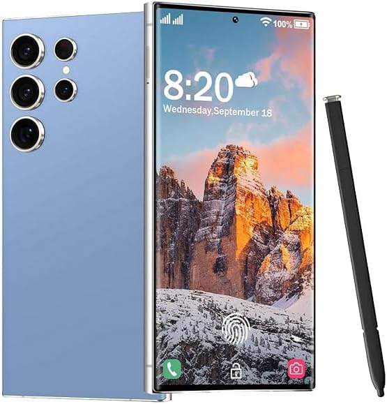 Home Moblie ExAchat C24 Ultra Unlocked Phone 5G Smartphone 8+256GB Android 14.0 Cell Phone 6.8″ HD Screen/6800mAh /Built-in Stylus/Supports 5G/Dual SIM Cards/Face Unlock/Fingerprint Unlock/GPS.(Blue)