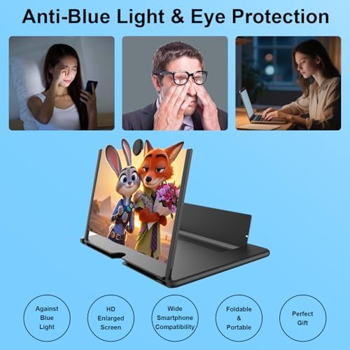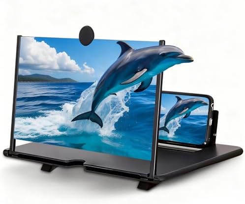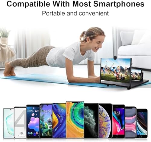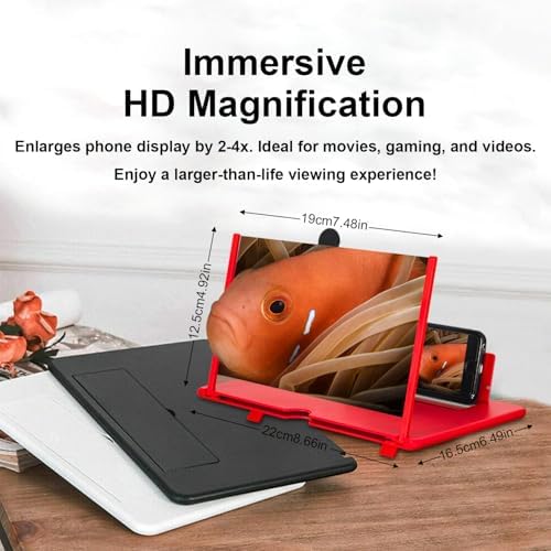 Screen Magnifier Version, 12inch HD Mobile Phone Magnifier Screen Enlarger for Movies Videos Games, Clear, Lightweight Foldable Mobile Phone Holder Compatible with All Smartphones (Black)