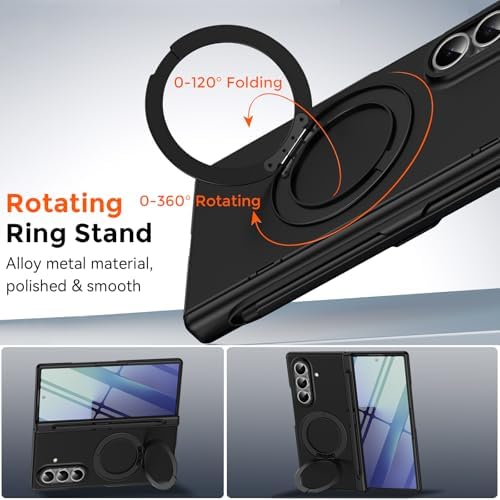 【Magnetic Ring, Compatible with Magsafe】 The metal ring features a magnetic design with an N52 magnet, providing strong holding power. Compatible with magnetic car mount, Magnetic Charger & Magnetic Wallet Car Slot, Compatible with Magsafe Accessories more. Our z fold 7 magnetic case makes charging effortless – no plugging in cables or removing the case