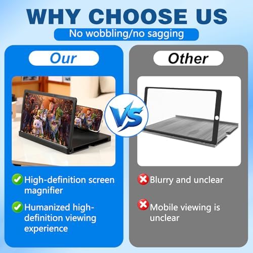 【10 or 12-Inch Large Screen for Cinema-Like Experience】 With a large display, this magnifier transforms the small screen of your phone into a broad and clear viewing interface. It’s perfect for mobile video streaming, gaming, and sharing interesting content with friends and family, bringing you an immersive cinema-like experience