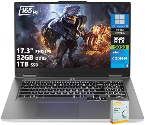 【Strong Graphics and Display】: 17.3″ FHD (1920×1080) IPS 300nits Anti-glare, 100% sRGB, 165Hz, G-SYNC; NVIDIA GeForce RTX 5050 8GB GDDR7, Boost Clock 2662MHz, TGP 115W, 440 AI TOPS