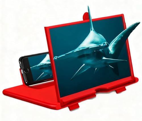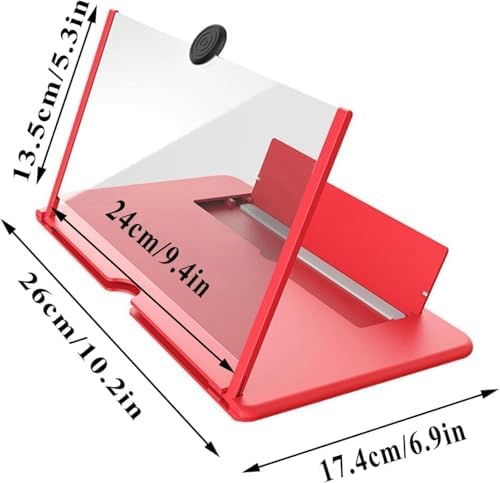 Screen Magnifier New Version, 2026 Mobile Phone Magnifier Screen with Stand Cellphone Holder, 10/12 Inch 3D HD Mobile Phone Amplifier for Watching Movies Videos, Supports All Smartphones (Red, 10”)