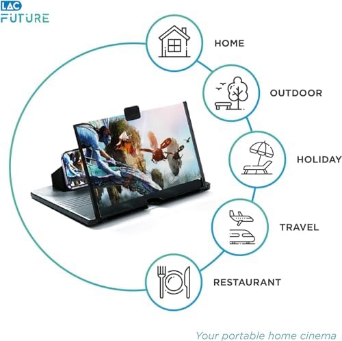 LAC 14” Screen Magnifier for Cell Phone, Mobile Phone Magnifying Projector Screen Enlarger for Movies and Gaming, Foldable Stand with 3D HD Amplifier