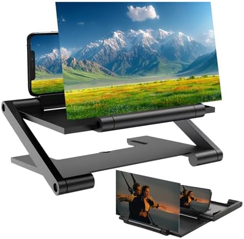 Mobile Phone Magnifier Screen, 2026 New 3D HD Magnifying Projector Screen Enlarger for Movies, Videos and Gaming, Foldable Phone Stand with Screen Amplifier, Compatible with All Smartphones (Black)