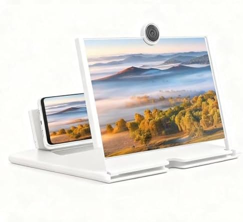 Screen Magnifier,3D HD Mobile Phone Magnifier Projector Screen Enlarger for Movies, Videos,Foldable Cell Phone Stand with Screen Amplifier,Supports All Smartphones 10 inch (White)