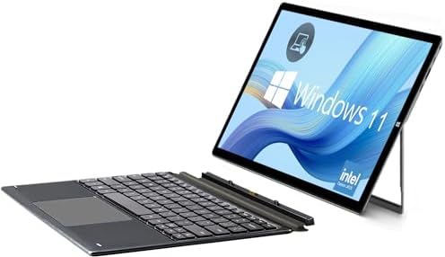 Windows Tablet with Keyboard 11.6″, Detachable 2 in 1 Laptop Touchscreen Windows 11, 6GB RAM 256GB Storage, Intel Celeron, 2.4G+5G WiFi, Bluetooth, USB3.0, HDMI, Dual Camera