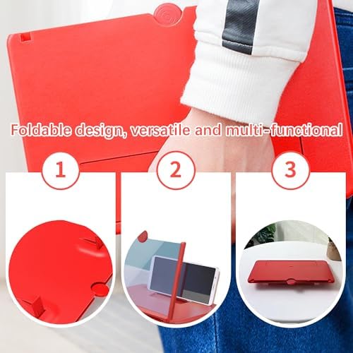 【Portable and practical】 Innovative 180° folding structure, packs into a book-sized size in 3 seconds, easily fits into a travel case or backpack;and when unfolded, it can instantly transform a 6-inch phone into a 12 inch tablet, suitable for outdoor, commuting, and other scenarios. every magnifier features an anti-slip phone slot to prevent your device from falling. The adjustable feet at the bottom allow you to find the perfect viewing angle for maximum comfort and stability on any flat surface.