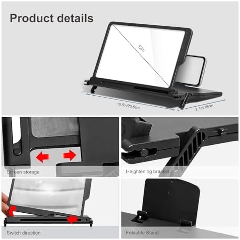 【FOLDABLE DESIGN】 Can be carried around. This Screen Magnifier for cell phone is foldable design.It is easy to carry and can be used as both a cell phone screen amplifer and a cell phone stand. As for its super thin folding design, it is easy to be stored in your bag, suitable for indoor, also outdoor, like Camping, Travel, Leisure, Anywhere, Etc. No power is needed for the phone screen magnifying function.