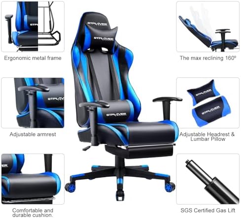 【Wide Applications】: GTPLAYER gaming chair is an ideal seat of choice for working,studying and gaming. Its versatile design and ergonomic features make it suitable for long hours of sitting, whether you’re tackling a demanding work project, delving into academic studies, or immersing yourself in intense gaming sessions. With its adjustable features and durable construction, the gaming chair provides the comfort and support needed for prolonged use across different settings.