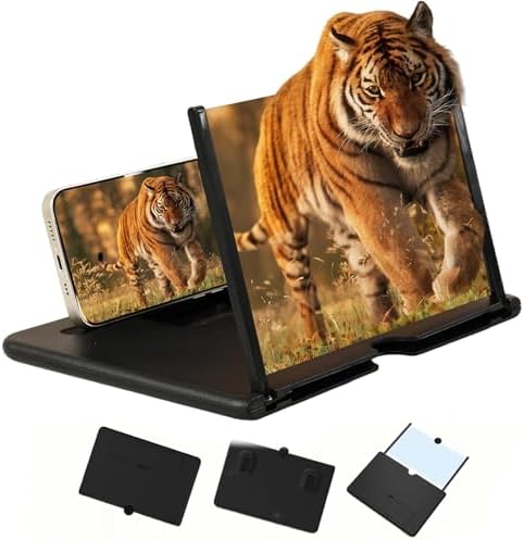 Home Moblie Screen Magnifier for Cell Phone, 3D HD Foldable Portable Big Screen Phone Magnifier with Eye Care & Universal Stand, Compatible with All Smartphones