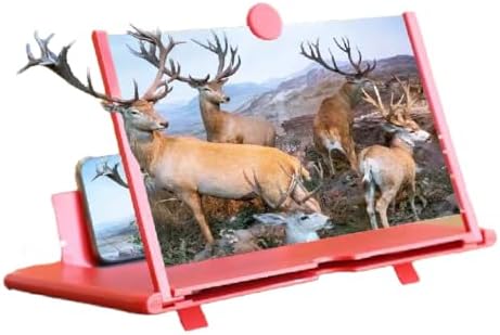 Home Moblie 12″ Screen Magnifier,3D HD Mobile Phone Magnifier Projector Screen Enlarger for Movies, Videos, and Gaming,Foldable Cell Phone Stand with Screen Amplifier,Supports All Smartphones (Red)