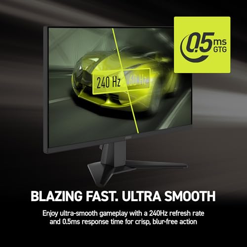 msi MAG 245F X24 24-inch 1920 x 1080 (FHD) Gaming Monitor, 240Hz, FreeSync Premium, HDR Ready, HDMI, VGA Port, VESA Mountable, Tilt, 4-Side Slim Bezel, 0.5ms, Black
