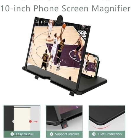 10″ Screen Magnifier,3D HD Mobile Phone Magnifier Projector Screen Enlarger for Movies, Videos, and Gaming,Foldable Cell Phone Stand with Screen Amplifier,Supports All Smartphones