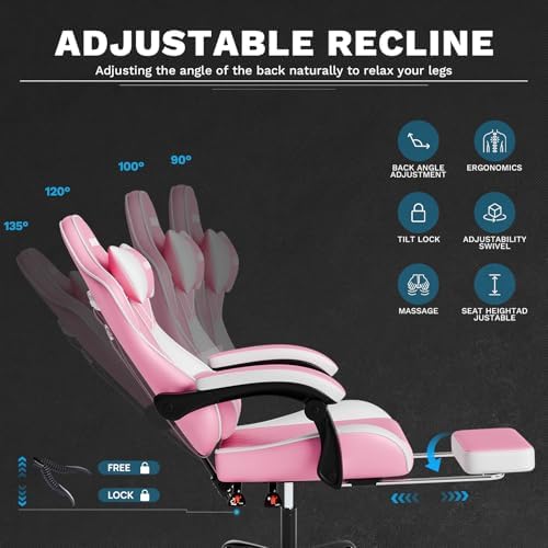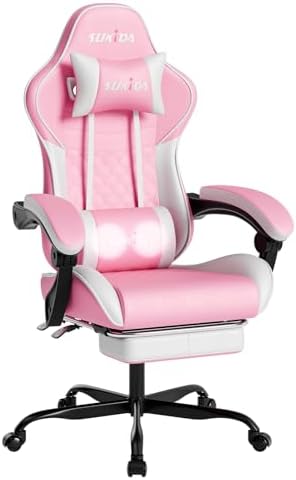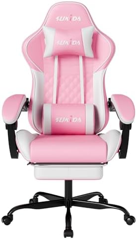 Pink and white video game chairs perfect for a girl’s, makes it the best gift.