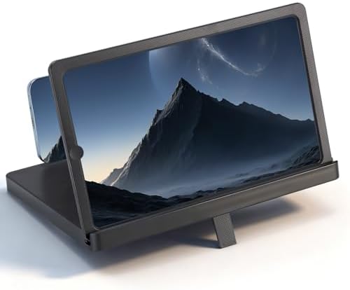 Home Moblie 2026 New HD Big Screen Cell Phone Screen Magnifier – Foldable Phone Stand & Movie Amplifier, Portable 3D Screen Magnifier for Travel & Elderly (Black, 12 in)