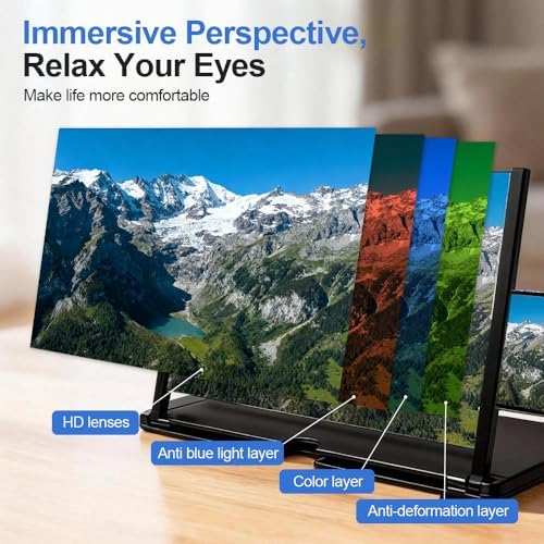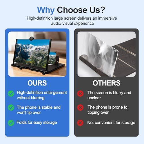 [Universal Compatibility]: Phone screen magnifier is compatible with all smartphones, making it the perfect solution for anyone looking to enhance their mobile viewing. Simply place your device on the foldable phone stand for instant entertainment with the cell phone screen magnifier for cell phone.