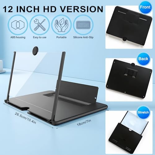 12 Inch Screen Magnifier for Cell Phone, 3D HD Phone Amplifier with Foldable Stand, Anti-Blue Light Enlarger for All Smartphones, Tech Gadgets Gifts for Men