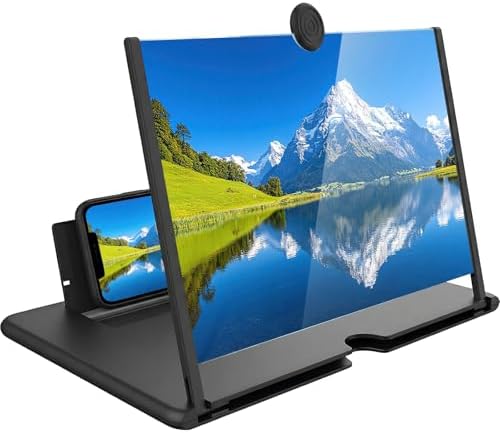 Home Moblie 12 Inch Screen Magnifier for Cell Phone, 3D HD Phone Amplifier with Foldable Stand, Anti-Blue Light Enlarger for All Smartphones, Tech Gadgets Gifts for Men