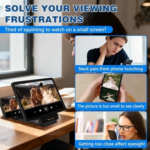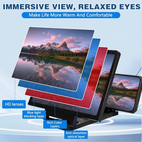 【Travel-Friendly & Foldable Design】High definition screen with magnifying glass and foldable design for storage. It is super slim and can be carried around in a bag.The adjustable stand lets you set the perfect angle, making the HD phone screen amplifier perfect for travel, work, or home use
