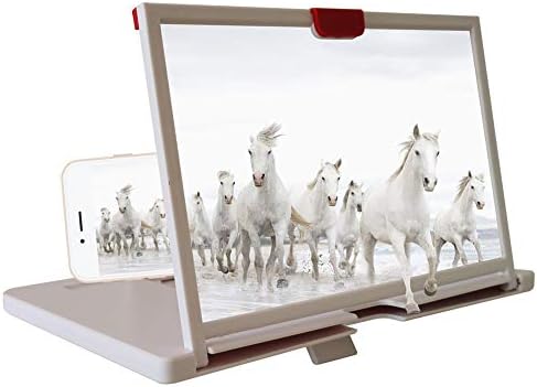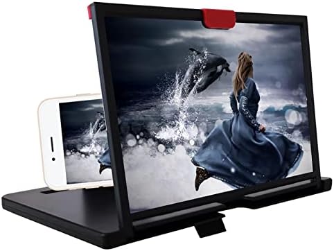 Screen Magnifier Amplifier, 12” Mobile Phone 3D HD Magnifying Projector with Foldable Stand Holder, Phone Screen Magnifier for Movies Videos Gaming, Compatible with Most Phones