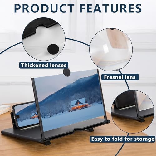 【Folding Design】Our cell phone magnifier screen storage type rotating folding design. If the height is not enough,height can be adjusted with bottom bracket.Super slim when folded and also can be carried around in your bag.Suitable for indoor,camping, journey,Home,anywhere and etc.