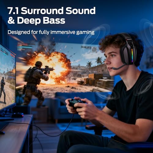 DUAL EQ MODES: Flip the switch—Game Mode blasts 7.1 surround for pinpoint enemy tracking and full battlefield immersion; Switch to Music Mode for studio-grade clarity, with deep bass and crisp instrument detail.