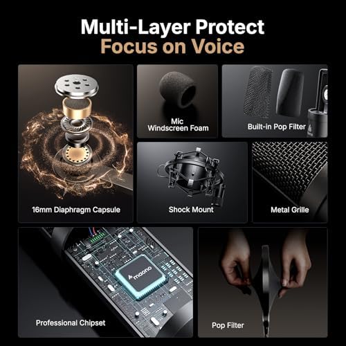 Plug and Play: The microphone has USB 2.0 data port, which is easy to connect with your computer, and no need extra driver software, and no need for an external sound card. Simply plug the USB cable into your laptop, and the mic is ready to use, offering seamless integration with various operating systems. Double shielding USB cable reduces interference. That makes it easy to sound good on a podcast, livestream, video call, or most any other kind of recording