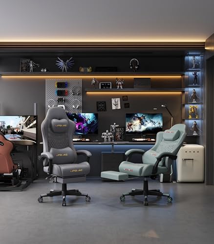 Home desktop sales Gaming Chair,Ergonomic Computer Gaming Chair,400lb Load-Bearing,Retractable Footrest/Waist Support/Ergonomic Backrest[Spring + 4D Sponge] (Grey)