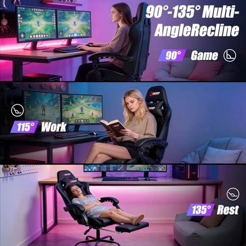 Customizable 90 ° -135 ° Ideal Angle: This versatile office gaming chair features a recline system from 90° to 135°. Set it to 115° for relaxing reading, or recline to 135° for a restorative nap. Paired with an extendable footrest and upgraded neck & waist massage pillows, this desk chair delivers a full-body relaxation experience.