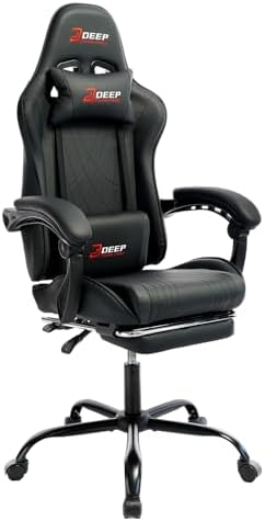 Home desktop sales Gaming Chair with Footrest, Ergonomic Game Chair with Lumbar Support and Linkage Armrest, Reclining Computer Chair Height Adjustable for Home Office (1001-Black)