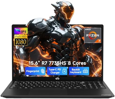 NIMO 2026 Gaming Laptop, AMD R7 7735HS (8C/16T, Up to 4.75GHz, Beat i7-12650H) 16GB DDR5 RAM 256GB SSD Business Computer with 15.6″ FHD Display Radeon 680M GPU 180° View 2-Year Warranty 100W Type-C
