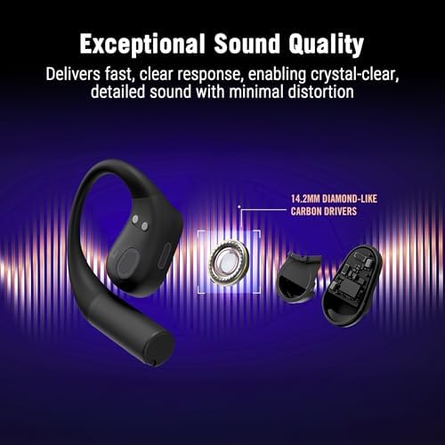 14.2 mm DLC-coated Diaphragm Drivers: Featuring a 14.2mm DLC-coated diaphragm, deliver crisp highs, deep bass, and a spacious soundstage. Enjoy open-ear comfort or switch to immersive mode.