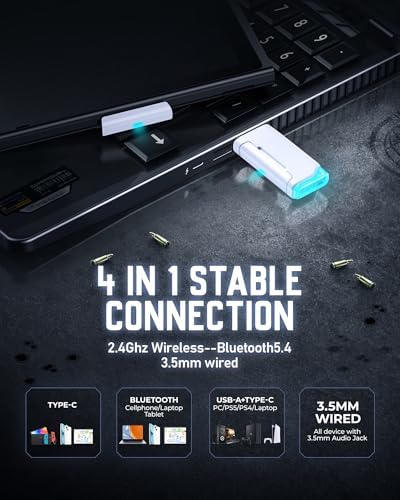 🎮【4 in 1 Multi-platform Compatibility】Unique 2 in 1 connection design (equipped with both USB-Adapter & Type-C dongle) make this wireless headset widely compatible with playstation 5, PS4, PC, Mac, phone, pad, Nintendo Switch (Invalid Microphone); Bluetooth mode of the headset is compatible with Mobile phone, Tablet, iPad and other smart devices. Extra 3.5mm Aux cable is provided for other game controller with 3.5mm port.